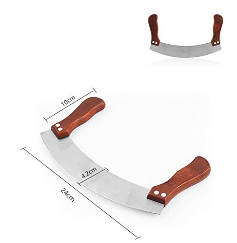 Die leicht gerundete Klinge schneidet perfekt auch die Familienpizza im XXL-Format. Aufgrund des durchgehenden runden Holzgriff ist das Hantieren mit dem Wiegemesser sowohl mit einer, als auch mit zwei Händen problemlos möglich.